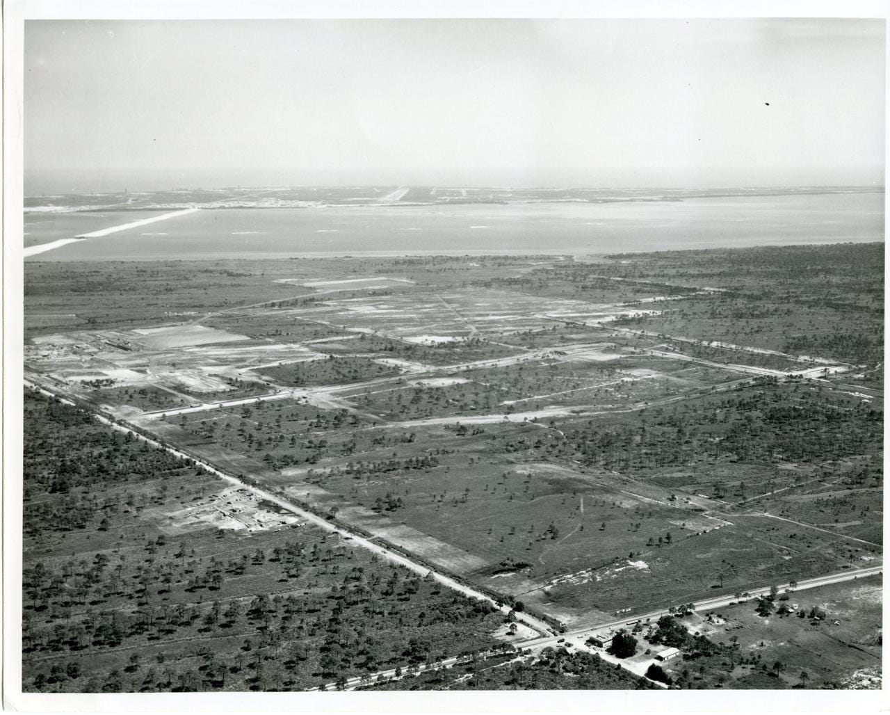 Orsino on April 19, 1963. At the bottom center of the image is the intersection of the old Highway A1A and Orsino Road. In the distance is Cape Canaveral. Image source: NASA.