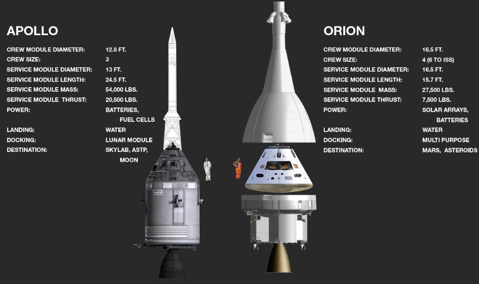A comparison of the Apollo and Orion crew capsules. Image source: NASA.